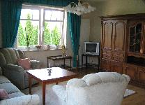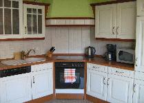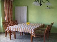 Die Ferienwohnung im Erdgeschoß bietet Ihnen auf 110m² Wohnfläche ausreichend Platz für einen entspannten und erholsamen Urlaub. In dem großräumigen Wohnzimmer befinden sich ein Sidebord, ein großer Esstisch mit 4 Stühlen und eine gemütlich eingerichtete Sitzecke mit einer Couch, einem kleinen Tisch und einem Fernseher mit Kabelempfang. Die Couch verwandelt sich im Handumdrehen in ein Bett somit können bis zu 8 Personen untergebracht werden. In der modern eingerichteten Küche befinden sich ein Ceranfeldherd sowie ein Backofen, ein Kühlschrank mit Gefrierfach, Mikrowelle, Geschirrspüler, Wasserkocher, Kaffeemaschine, Toaster und eine Essecke.